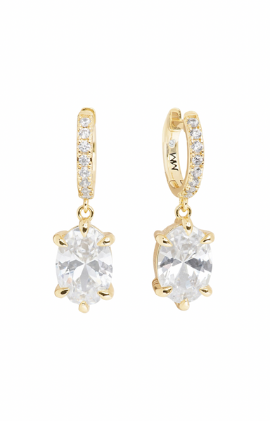 A sleek huggie finished with a suspended oval solitaire for movement and brilliance. Clean lines, modern proportion, and just the right amount of d...