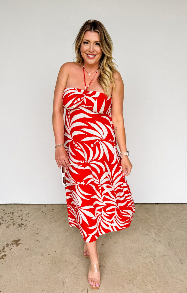 Megan is wearing size M Fit is true is true to size Megan’s tts is S/M Regular fit 3-piece set Colorful, martini all over design Button front clos...