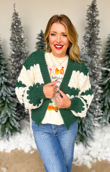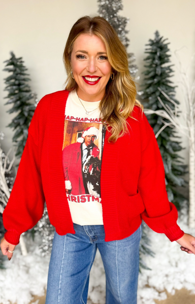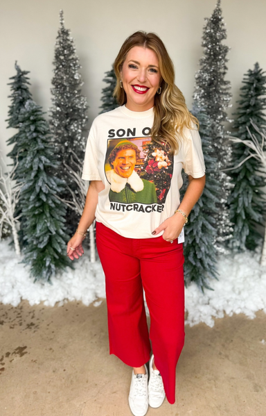 Shawna is wearing size L Fit is true to size Shawna’s tts is L Regular fit Christmas graphic on front Cropped 50% cotton, 50% polyester