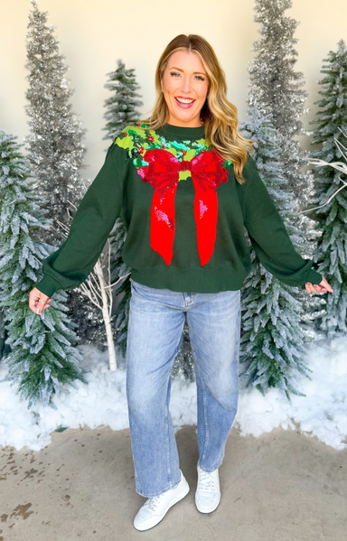 Shawna is wearing size L Fit is true to size Shawna’s tts is L Regular fit Sequined wreath that wraps around the neckline Soft, knit fabric 45% co...