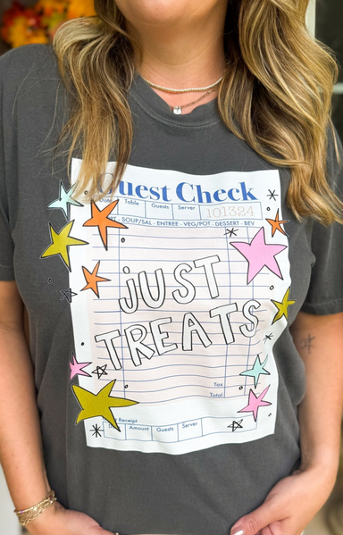 Shawna is wearing size L Fit is true to size Shawna’s tts is L Relaxed fit Crewneck Vintage wash Halloween graphic front 100% cotton