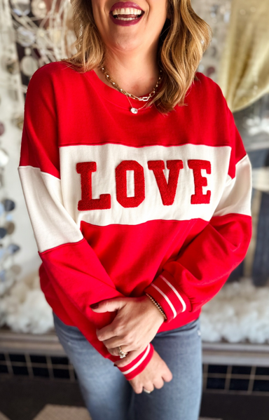 Shawna is wearing size L Fit is true to size Shawna’s tts is L Relaxed, oversized fit Crewneck ”Love” collegiate front Soft, cotton-blend fleece 6...