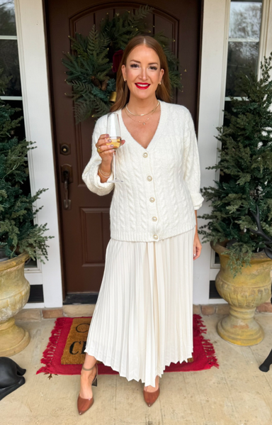 Shawna is wearing size L Fit is true to size Shawna’s tts is L Regular fit Full button front Sweetheart neck Midi length Adjustable spaghetti stra...