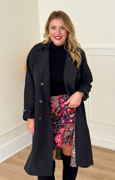Shawna is wearing size L Fit is true to size Shawna’s tts is L Regular fit Notch lapels Belted tab cuffs Double-breasted button front Belted waist...