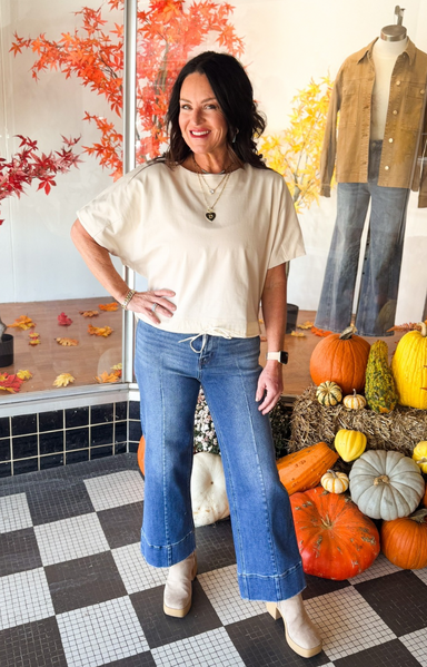 Shawna is wearing size M Size down one for best fit Shawna’s tts is L Oversized fit ‘SOONERS’ screenprint on front Available in oatmeal and washed...