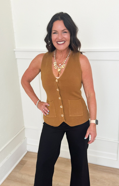 Megan is wearing size S Fit is true is true to size Megan’s tts is S/M Regular fit Button front Ribbed cuffs & neckline Soft knit fabric